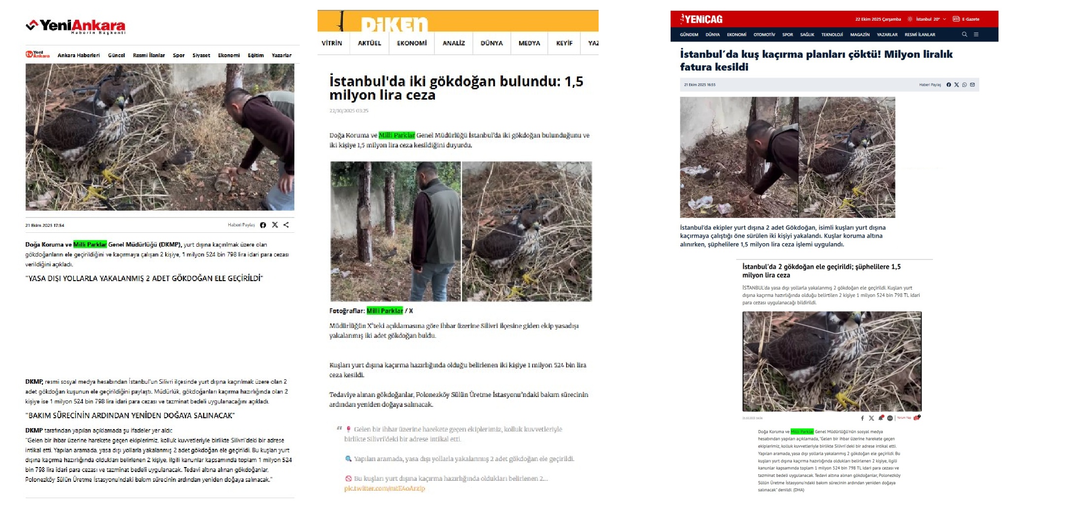 Basında biz ''İstanbul'da 2 gökdoğan ele geçirildi; şüphelilere 1,5 milyon lira para cezası verildi.''