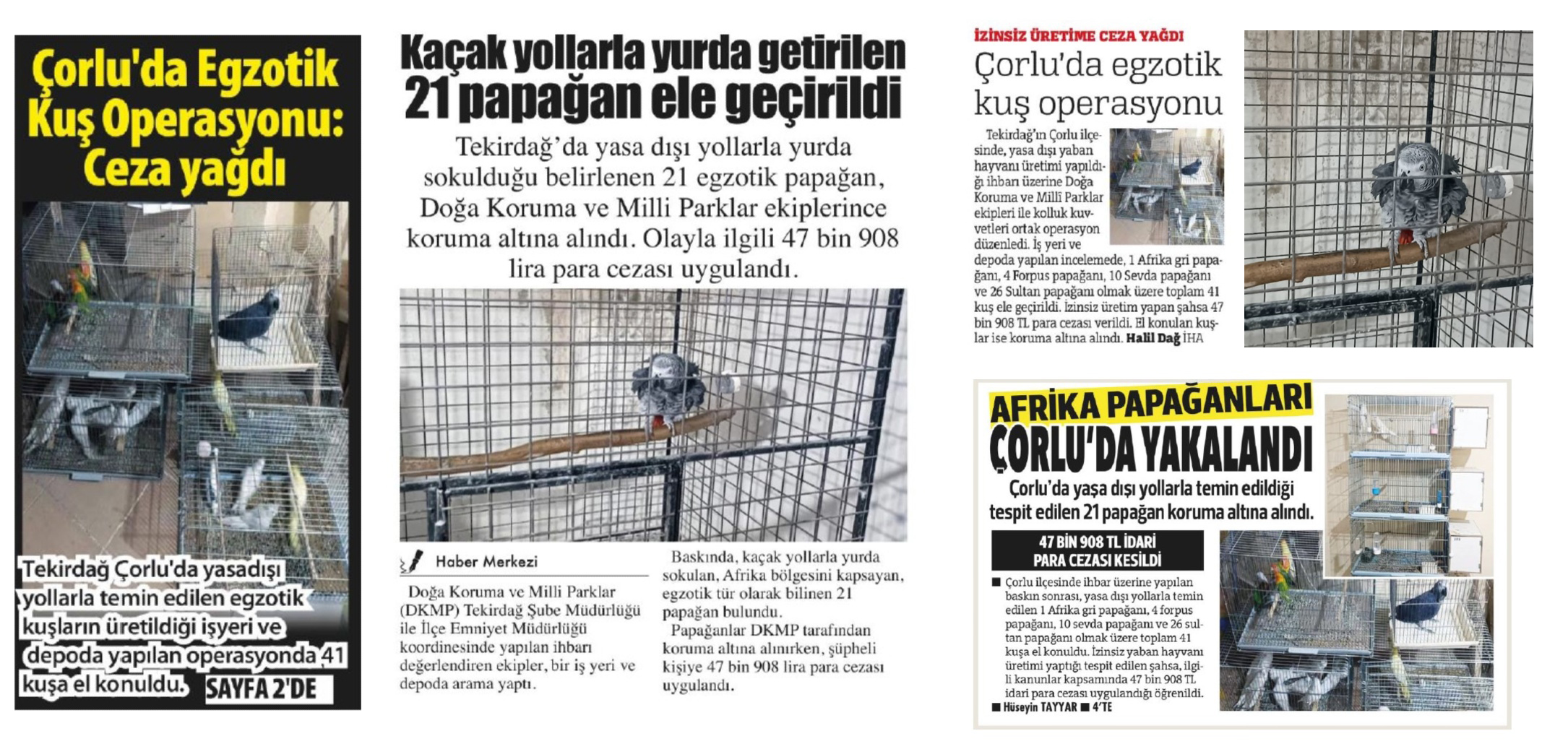 Basında Biz ''Çorlu'da yasa dışı yollarla temin edilen egzotik kuşlar koruma altına alındı''
